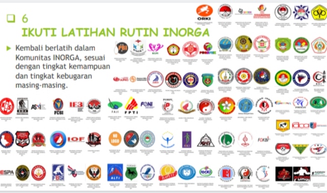Tidak lupa dr. Leny mengajak masyarakat untuk kembali mengikuti kegiatan latihan rutin yang kerap diselenggarakan oleh tiap-tiap Induk Organisasi Olahraga (inorga) yang berhimpun di KORMI. “Ikuti latihan rutin inorga, kembali berlatih dalam komunitas INORGA, sesuai dengan tingkat kemampuan dan tingkat kebugaran masing-masing,” ajaknya.