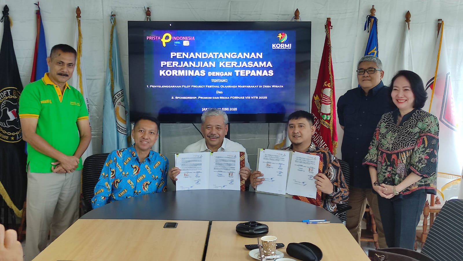 Penandatanganan kerjasama yang dilakukan oleh Ketua Umum KORMI Nasional Hayono Isman bersama TEPANAS dan RajaMICE dalam upaya mendukung kegiatan Festival Olahraga Masyarakat Nasional atau FORNAS VIII NTB 2025 mendatang dan pilot project Festival Olahraga Masyarakat Desa Wisata (FORDESWITA) sebagai bagian dari menuju FORNAS VIII NTB 2025.